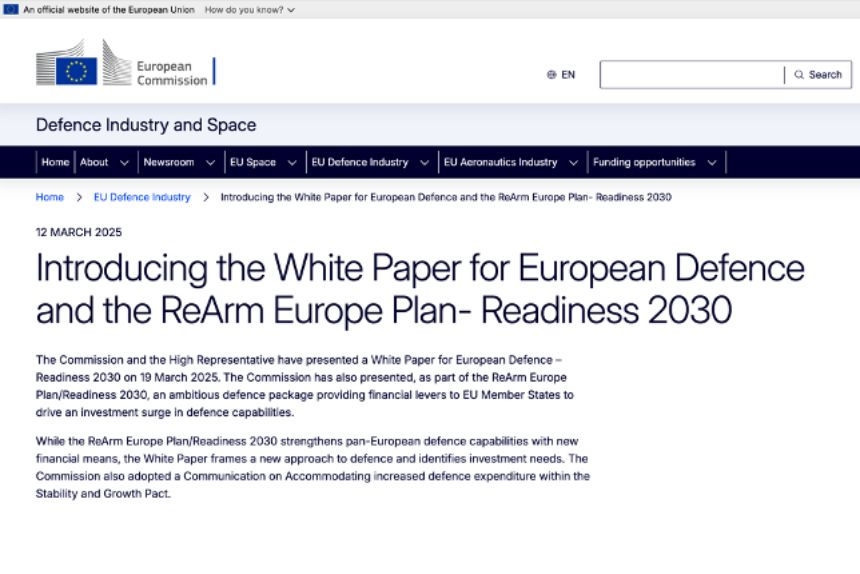 White Paper for European Defence – Readiness 2030 — багатообіцяюча назва документу «Готовність 2030». Основний меседж – Європі пора вийти з-під крила США та стати самостійною, в першу чергу — у військовій сфері, головна мета – переозброєння Європи з урахуванням нового бойового досвіду, створення міцної бази для оборонної промисловості, щоб на випадок нових російських наступальних ініціатив – бути до них готовими, а для цього, звісно ж, потрібні немалі інвестиції.