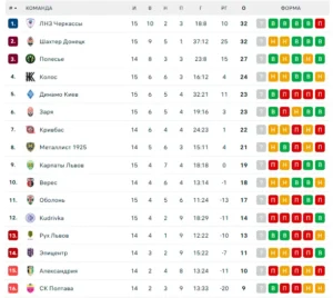 Турнірна таблиця УПЛ.