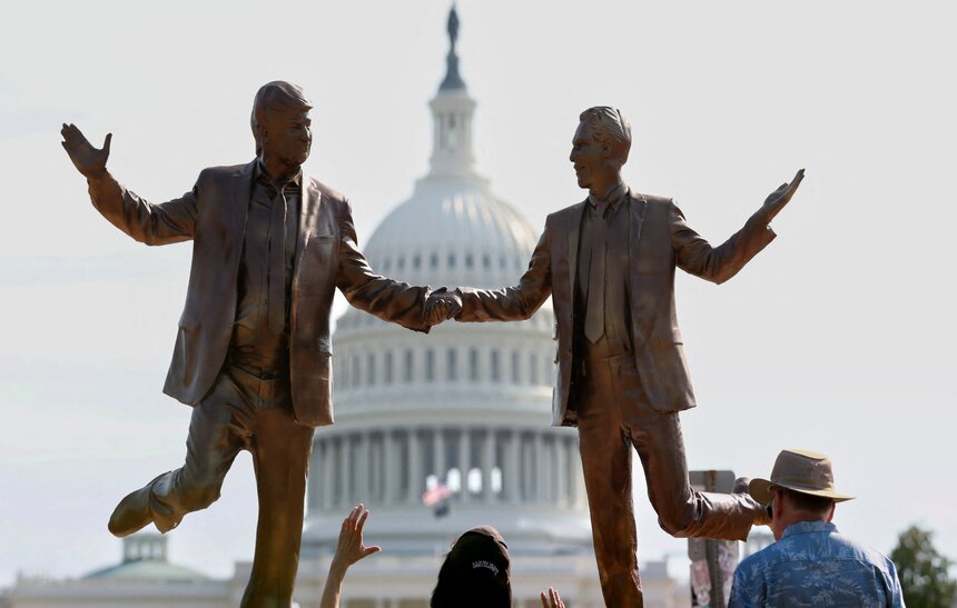 Ця робота є останньою з серії скульптур із критикою президента, які були встановлені у Вашингтоні та інших місцях анонімною групою. На табличці біля основи інсталяції написано: “Ми відзначаємо давній зв’язок між президентом Дональдом Дж. Трампом та його “найближчим другом” Джеффрі Епштейном”.