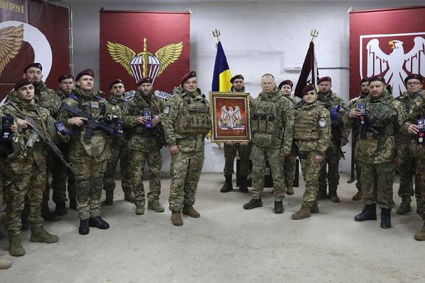 «Під час роботи на Курському напрямку нагородив наших хоробрих воїнів. Героїчні дії українських військових змусили противника утримувати значне угруповання сил на своїй території та перекидати резерви з інших напрямків», — йдеться у дописі головнокомандувача.