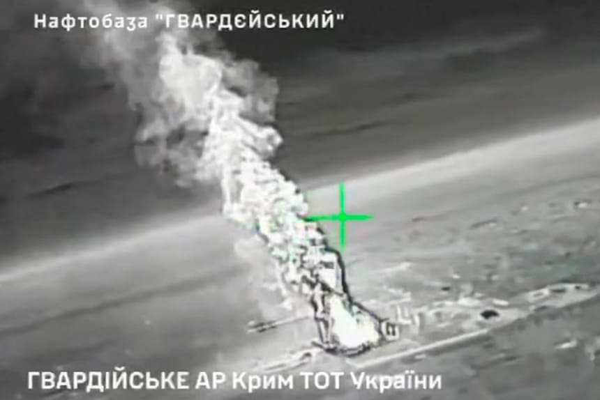 Сили спеціальних операцій продовжують завдавати ударів по військових цілях та інших важливих об’єктах РФ, послаблюючи наступальний та воєнно-економічний потенціал країни-агресора. Цього разу було уражено нафтобазу та ФДКУ комбінат «Гвардійський», що в тимчасово окупованому Криму.