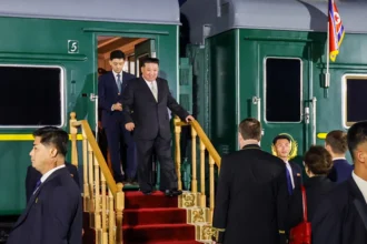 Глава Північної Кореї Кім Чен Ин прямує до Китаю на фірмовому бронепоїзді, аби долучитися до військового параду у…