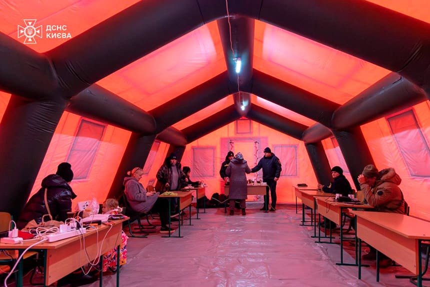 У Києві наразі функціонують 1395 Пунктів Незламності, де жителі міста можуть зігрітися та отримати необхідну допомогу. Зокрема, 211 пунктів допомоги розгорнули рятувальники ДСНС на базі наметів.