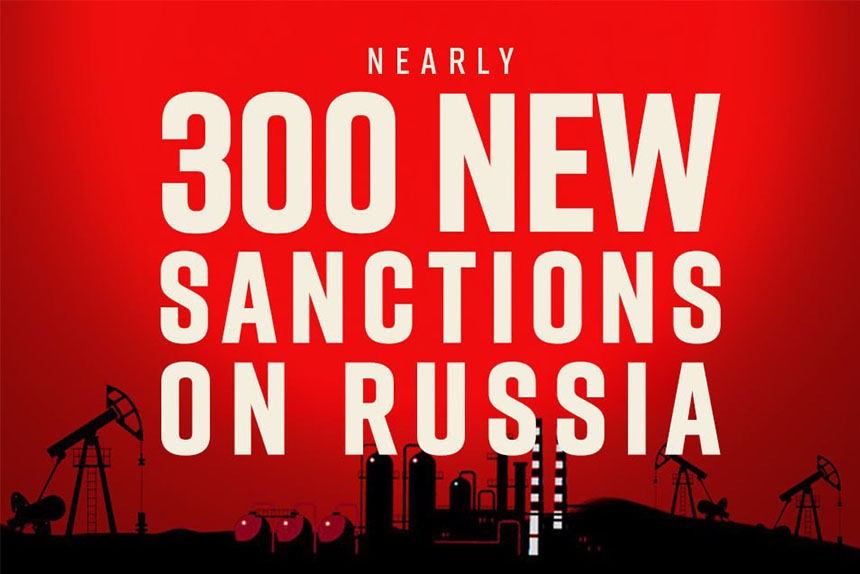 За інформацією відомства, майже 300 нових санкцій були введені проти ключових постачальників енергетики та військової техніки, а також проти російських компаній і фізичних осіб, які підтримують воєнні дії Кремля.