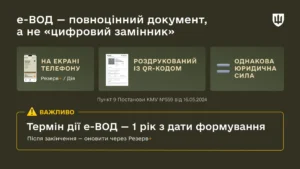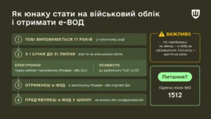 Зазначається, що електронний військово-обліковий документ (е-ВОД) – у застосунку Резерв+, на порталі Дія або роздрукований із QR-кодом – є стандартною і єдиною формою для звичайного учня-призовника. Вимагати замість нього щось інше школа не має права.